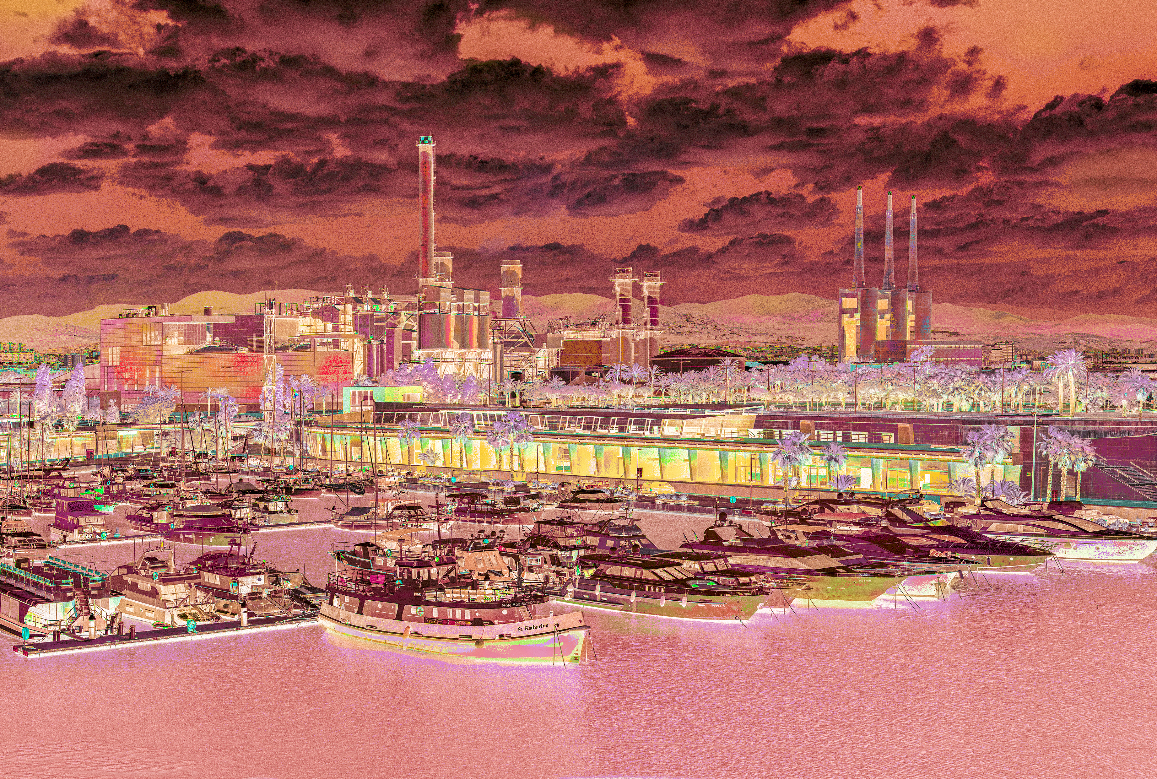This series emphasizes on the legacy of industrialization and its silent cost: the warming of our world. The port, the chimneys, the factories—symbols of progress—now speak of disruption, excess, and fragility. Each photograph reveals a world upside down. They have been created through a process of inversion, negatives turned into positives, where light becomes shadow and colors erupt into explosive, unreal skies. These skies, often darkened, burning, or almost surreal, are not mere aesthetic choices; they are metaphors for the state of our atmosphere, disturbed, altered, and transmuted by human intervention. What remains are landscapes of a post-industrial New York, at once powerful and unsettling, where light and shadow exchange roles and the atmosphere itself seems to question us. These works do not shout; they whisper. And in their whisper lies a reminder: the climate is changing, and its memory is longer than ours. Yet their message is clear: How long can we remain indifferent, and will we act before it is too late?