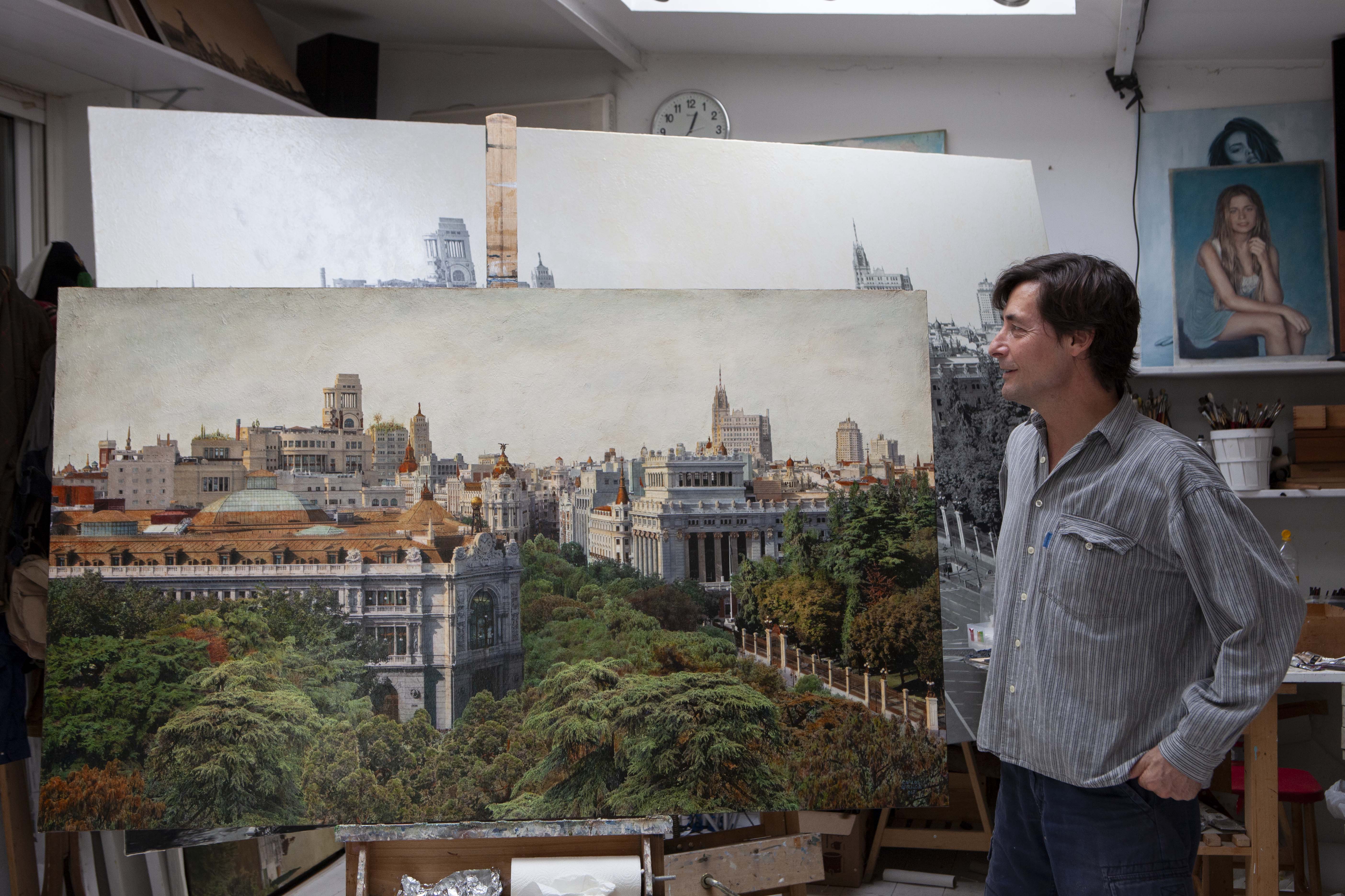 Estudio 8 "Mi estilo de pintura ha sido, desde sus inicios, un constante diálogo entre la ciudad y la naturaleza. En mis obras, los paisajes urbanos de Madrid, mi ciudad natal, no se muestran en su forma habitual; en cambio, están rodeados y transformados por una naturaleza exuberante que parece reclamar su espacio. Edificios icónicos, calles y plazas que muchos reconocen se ven inmersos en un entorno verde y frondoso, como si la naturaleza hubiese comenzado a recuperar lo que una vez fue suyo.